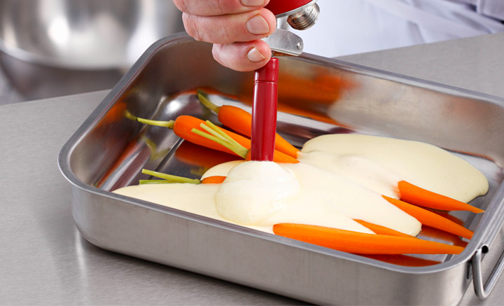 To serve hot foams you can keep the contents of the iSi Gourmet Whip hot in a water bath, sous vide or bain marie, during service or you can use an iSi Thermo Whip which will keep them hot for up to 3 hours. Try these amazing hot foams with your iSi Whip!